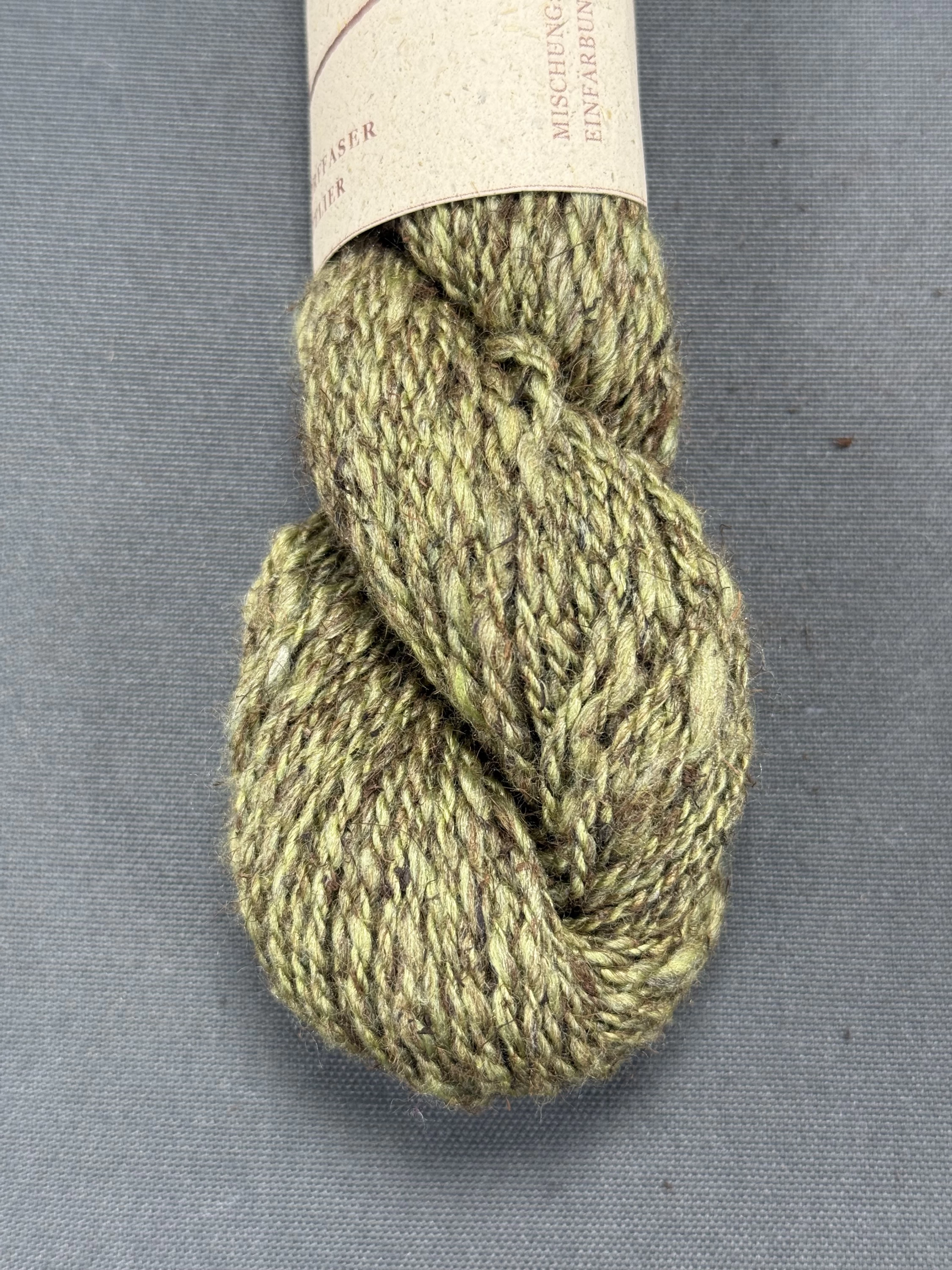 Torffaser-Wolle-Seide-Garn gruen pflanzengefärbt