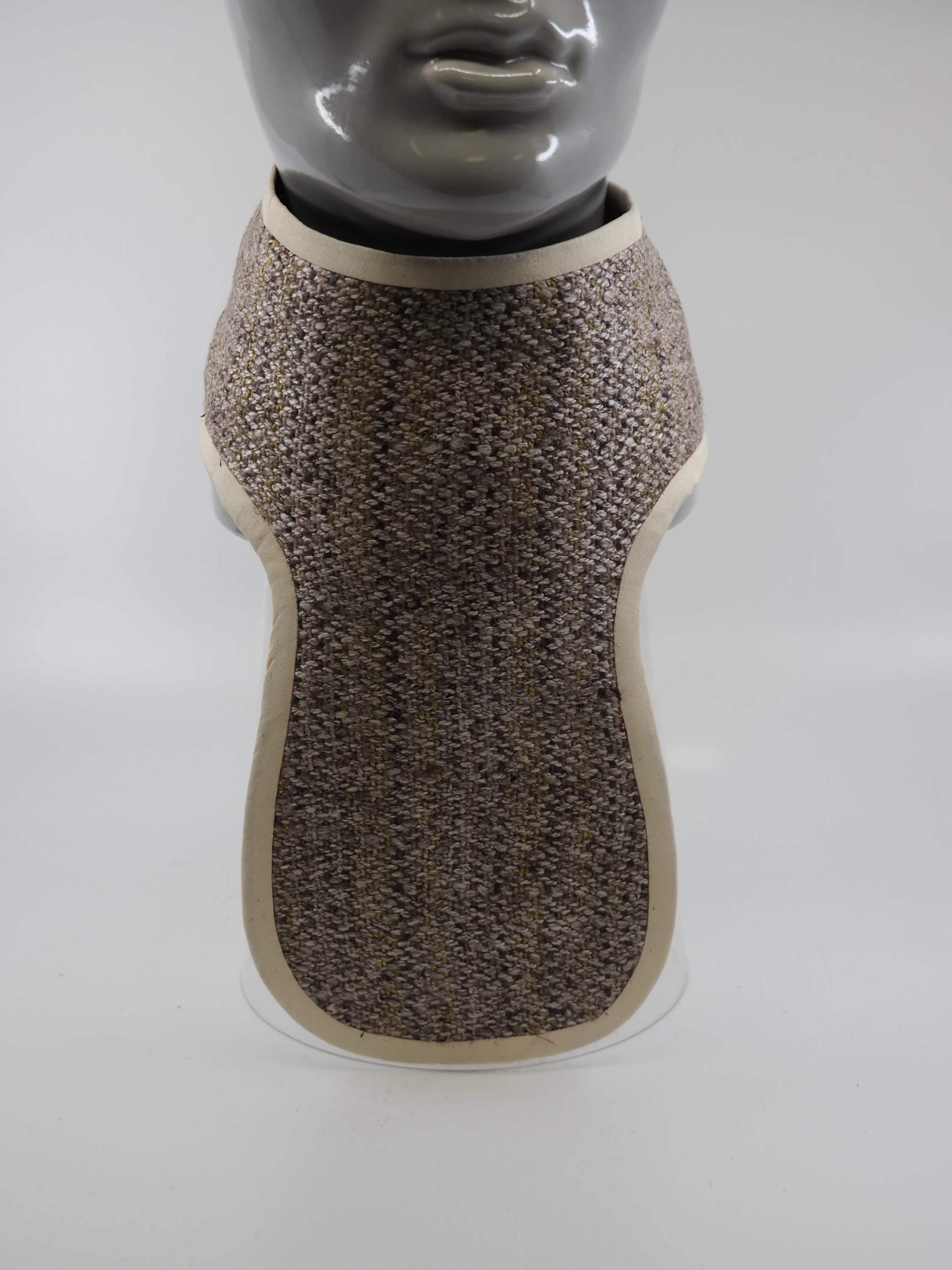 Der gewobene Schulterwärmer trägt nicht auf und kann daher unter der Kleidung getragen werden.